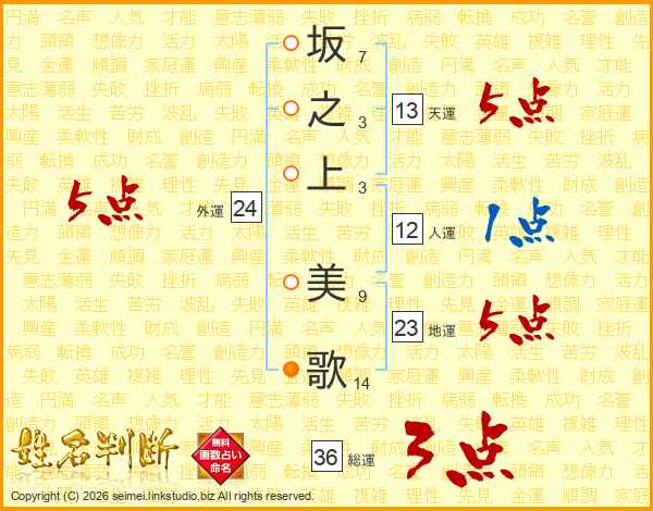 坂之上美歌さんの天運は13画の5点!