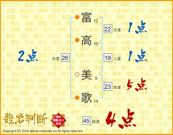 富高美歌さんの総運は45画の4点!