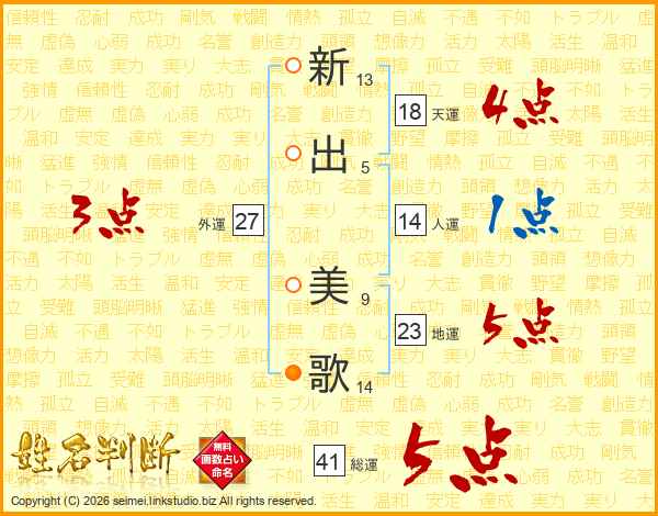新出美歌さんの天運は18画の4点!