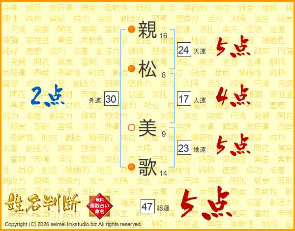 親(16画)松(8画) 美(9画)歌(14画)