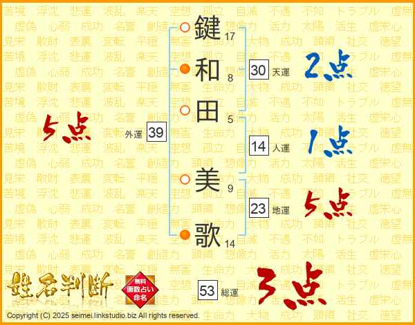 鍵和田美歌さんの天運は30画の2点!