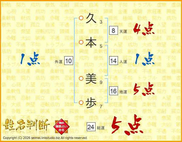 久本美歩さんの総運は24画の5点!