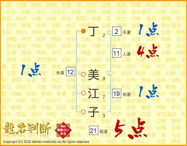 丁美江子さんの総運は21画の5点!
