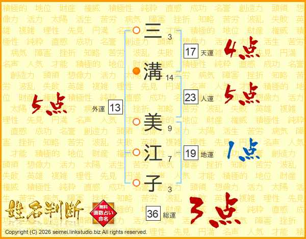 三溝美江子さんの天運は17画の4点!