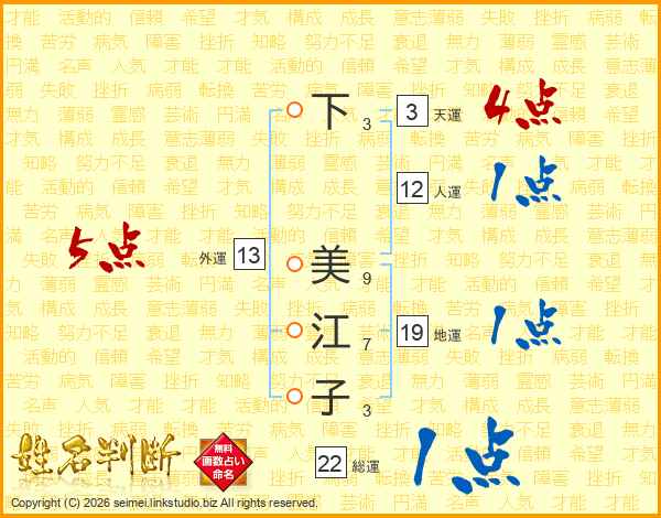 下美江子さんの総運は22画の1点!