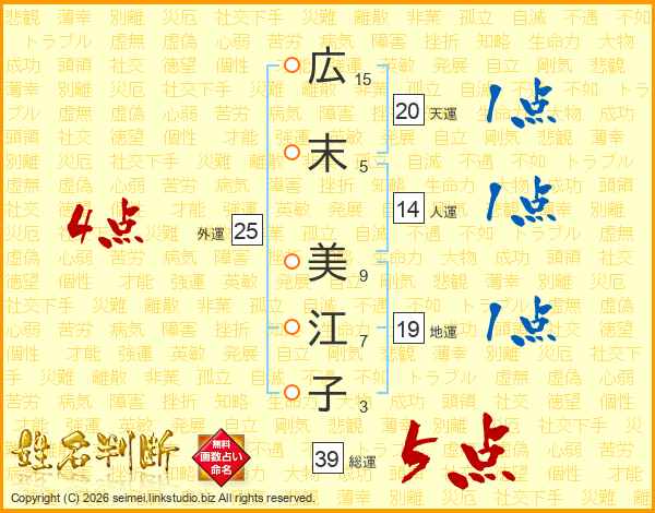 広末美江子さんの総運は39画の5点!