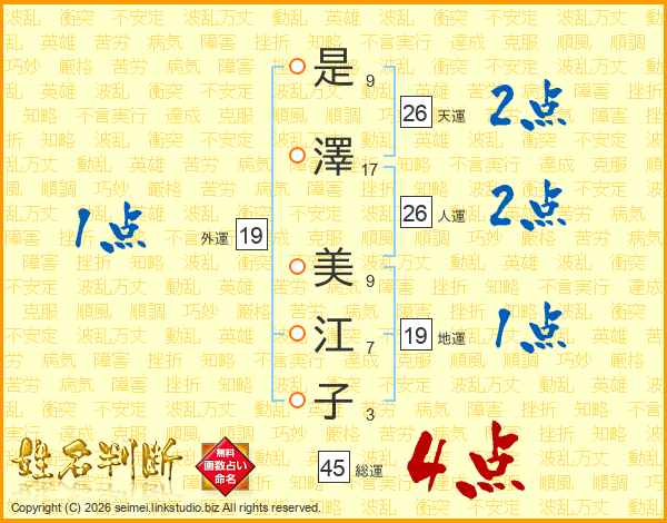 是澤美江子さんの人運は26画の2点!