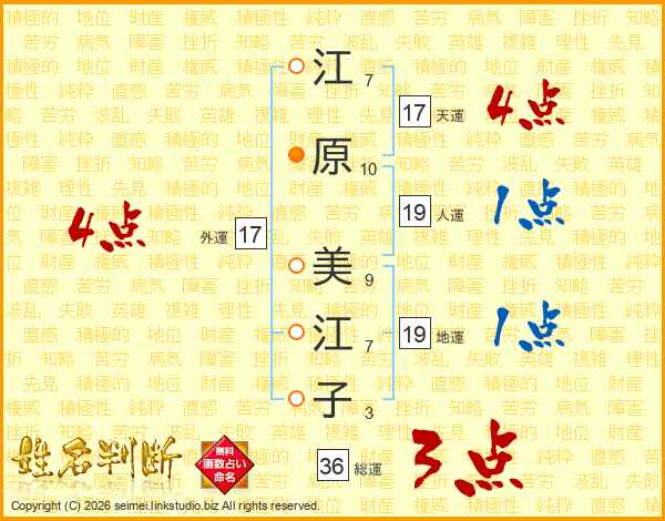 江原美江子さんの総運は36画の3点!