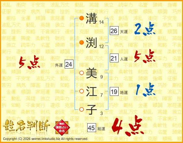 溝渕美江子さんの総運は45画の4点!