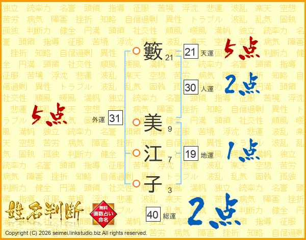 籔美江子さんの外運は31画の5点!