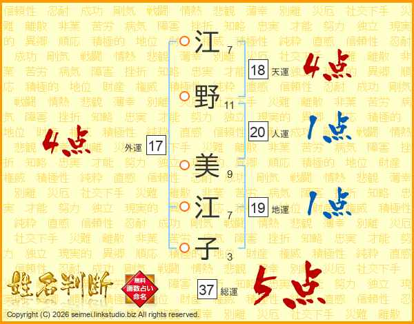 江野美江子さんの総運は37画の5点!