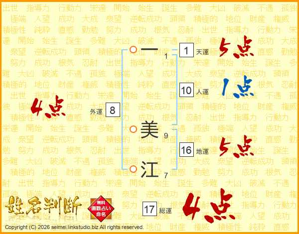一美江さんの総運は17画の4点!