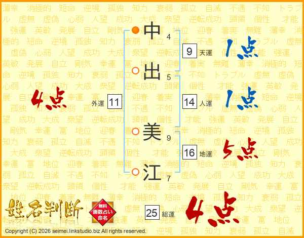 中出美江さんの人運は14画の1点!