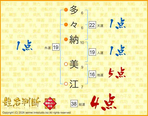 多々納美江さんの総運は38画の4点!
