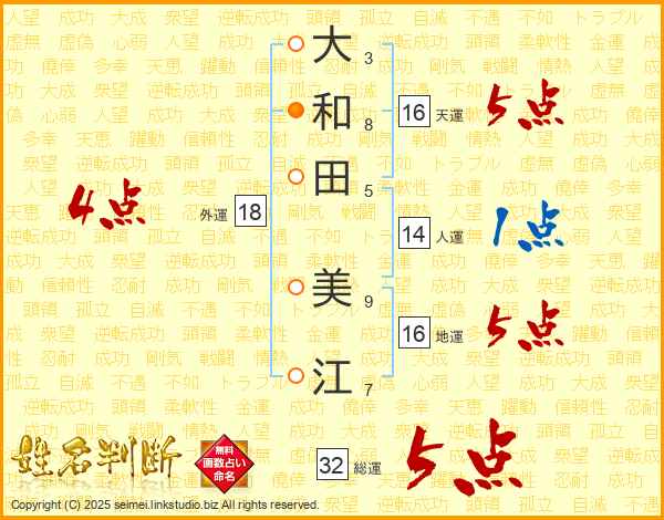 大和田美江さんの総運は32画の5点!