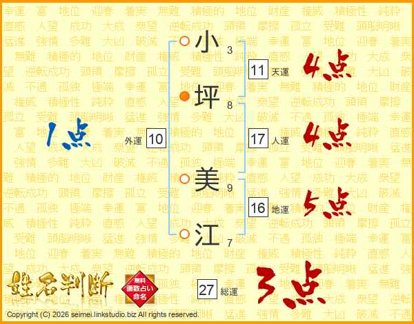 小(3画)坪(8画) 美(9画)江(7画)
