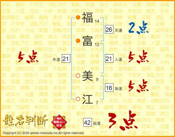 福富美江さんの天運は26画の2点!