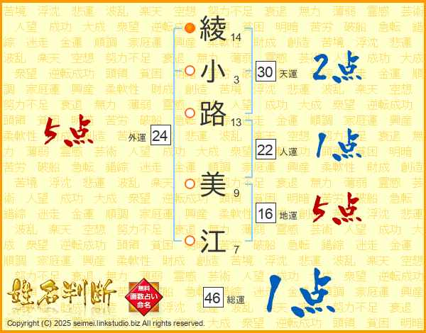 綾小路美江さんの外運は24画の5点!