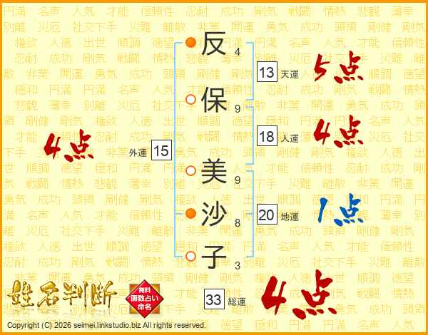 反保美沙子さんの総運は33画の4点!