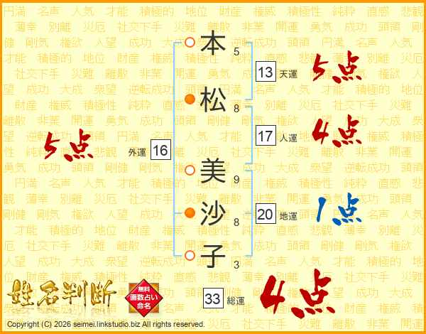 本松美沙子さんの総運は33画の4点!
