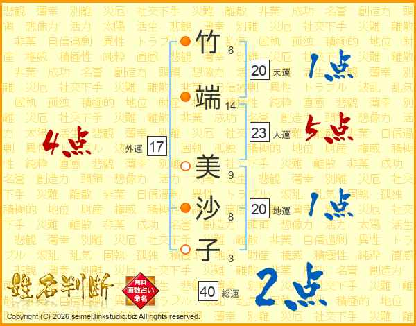 竹端美沙子さんの総運は40画の2点!