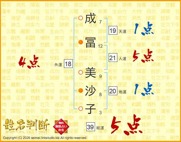成冨美沙子さんの総運は39画の5点!