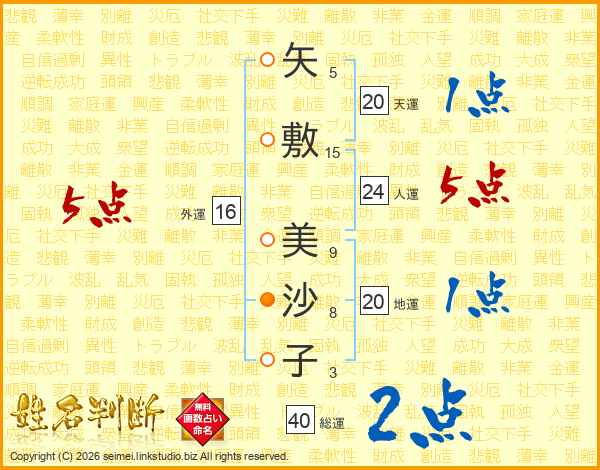 矢敷美沙子さんの外運は16画の5点!