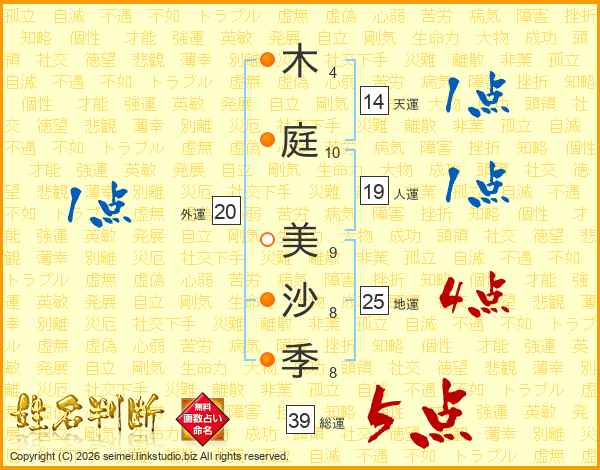 木庭美沙季さんの総運は39画の5点!