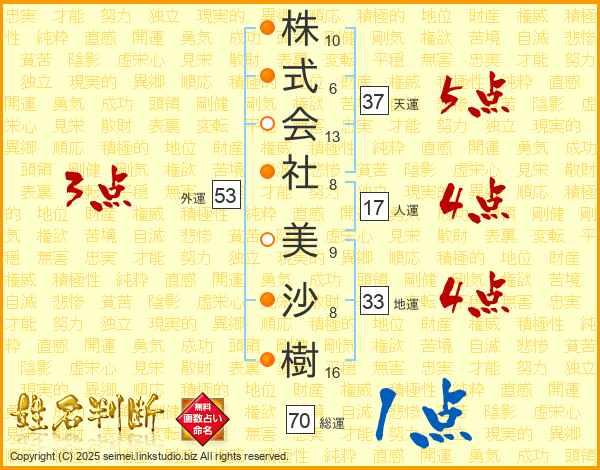 株式会社美沙樹さんの地運は33画の4点!