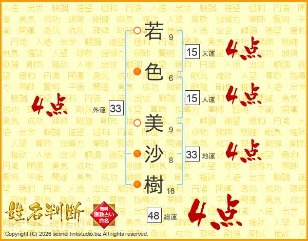 若色美沙樹さんの外運は33画の4点!