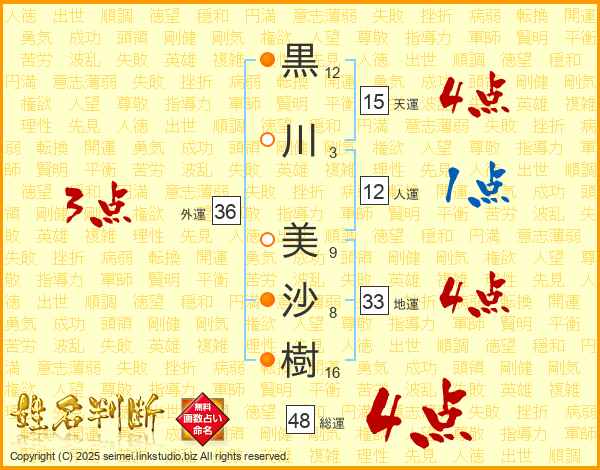 黒川美沙樹さんの総運は48画の4点!