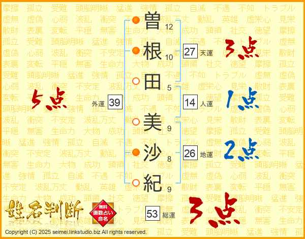 曽根田美沙紀さんの天運は27画の3点!