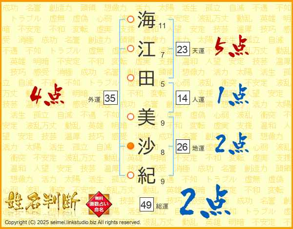 海江田美沙紀さんの外運は35画の4点!