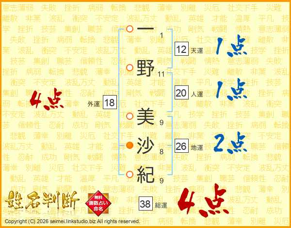 一野美沙紀さんの総運は38画の4点!