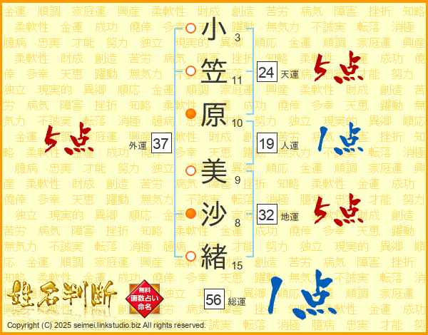 小笠原美沙緒さんの総運は56画の1点!