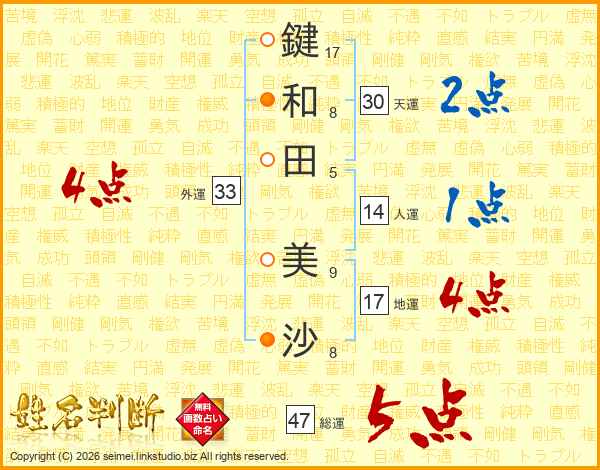 鍵和田美沙さんの天運は30画の2点!