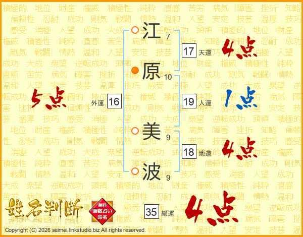 江原美波さんの天運は17画の4点!