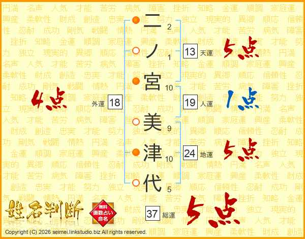 二ノ宮美津代さんの総運は37画の5点!