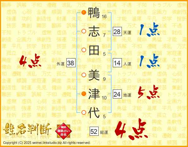 鴨志田美津代さんの総運は52画の4点!