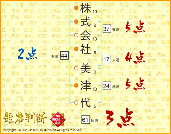 株式会社美津代さんの天運は37画の5点!