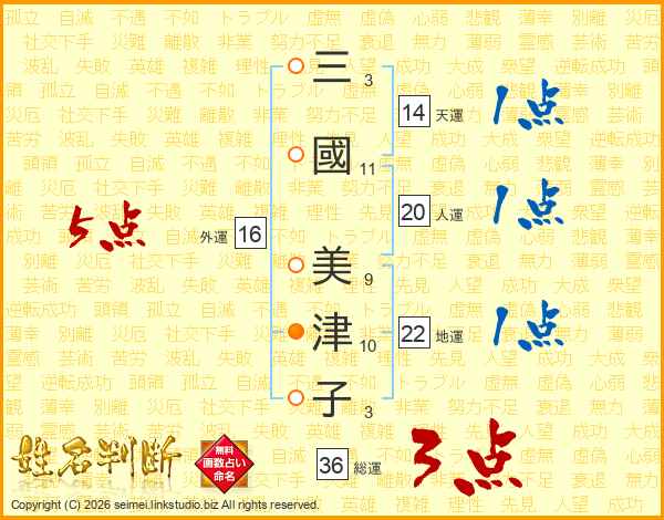 三國美津子さんの総運は36画の3点!