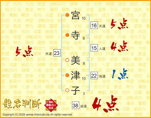 宮寺美津子さんの総運は38画の4点!