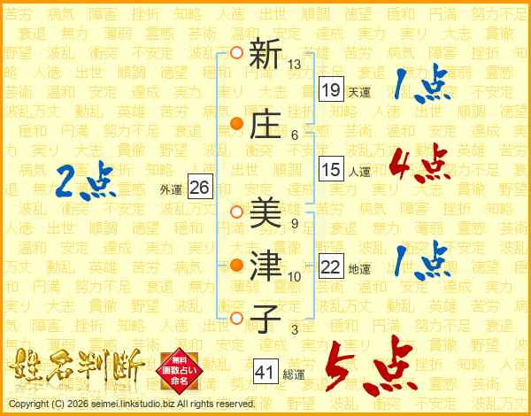 新庄美津子さんの総運は41画の5点!