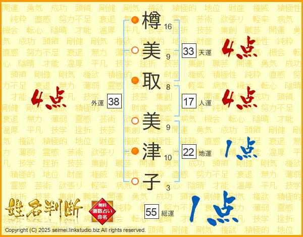 樽美取美津子さんの総運は55画の1点!