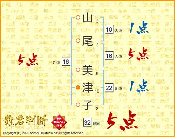 山尾美津子さんの総運は32画の5点!