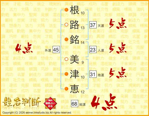 根路銘美津恵さんの天運は37画の5点!