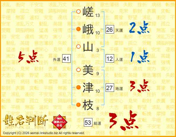 嵯峨山美津枝さんの天運は26画の2点!