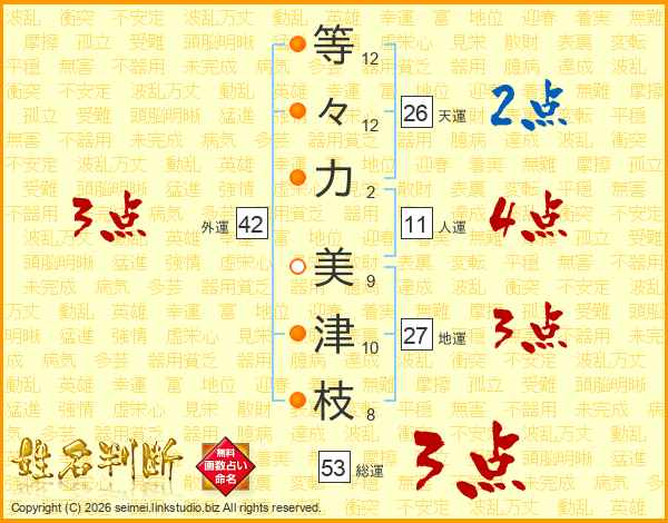 等々力美津枝さんの天運は26画の2点!