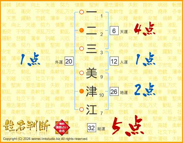 一二三美津江さんの総運は32画の5点!