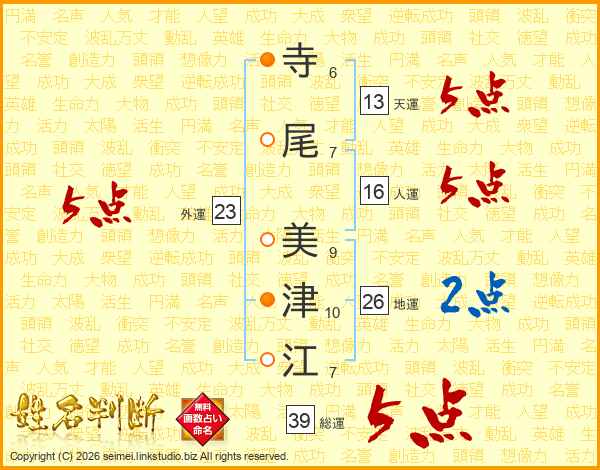 寺尾美津江さんの総運は39画の5点!